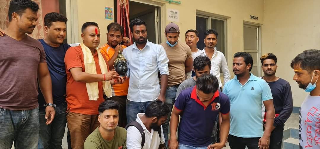 प्रहरी नायव निरीक्षक अधिकारीलाई स्वागत गर्दै शान्ति युवा विकास मञ्चले सफल कार्याकालको शुभकामना दिएक‍‍ो थियो । शान्ति युवा विकास मञ्चले अधिकारीलाई मायाको चिनो स्वरूप गौतम बुद्धको मुर्ति समेत प्रदान गरेको थियो ।