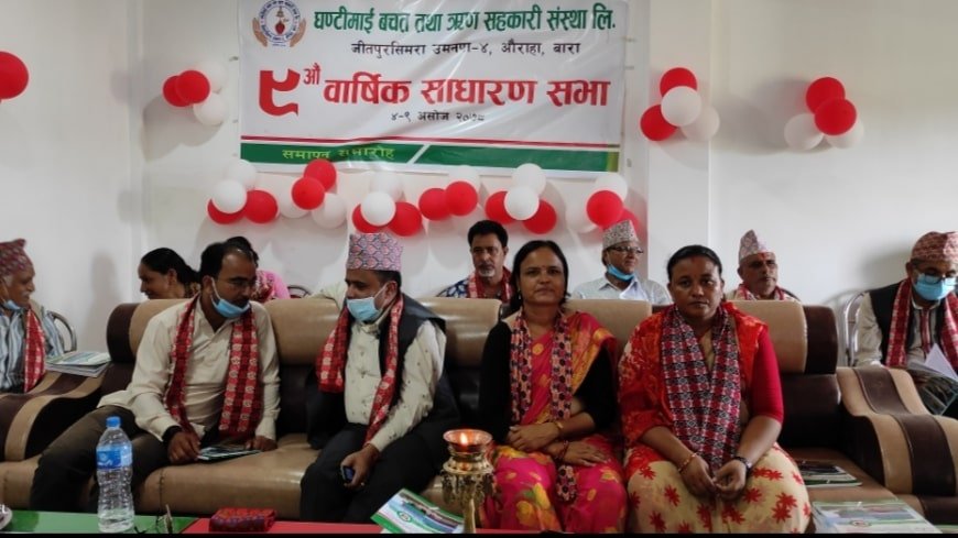 बाराको औराहास्थित रहेको घण्टीमाई बचत तथा ऋण सहकारी संस्था लिमिटेडको ९ औ बार्षिक साधारण सभा आज शनिबार सम्पन्न भएको छ । जितपुरसिमरा उपमहानगरपालिका वडा नम्बर ४ स्थित औराहामा साकोसको आफ्नै नँया भवनको सभाहलमा साधरण सभा सम्पन्न भएको हो ।