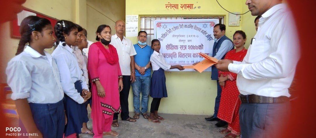नेपाल सरकारको शिक्षा मन्त्रालयले उपलब्ध गराएको नेपालको राष्ट्रिय झण्डा जीतपुरसिमरा उपमहानगरपालिका वडा नम्बर ७ का वडा अध्यक्ष रामबाबु गुप्ता, सोही वडाका वडा सदस्य दुर्गा रिजाल, ज्ञानी पासवान, स्कुलका प्र.अ. राजु सिंह, स्कुल व्यवस्थापन समितिका सदस्य मुरारी पुरी लगायथ समाज सेवी, स्कुलका शिक्षकहरूले झण्डोत्तोलन गर्नुभएको थियो ।