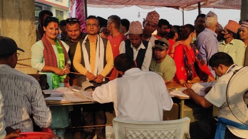 गठबन्धन पार्टी नेताकार्यकर्तासहित निर्वाचन अधिकृतको कार्यालयमा पुगेर पौडेल र उप-प्रमुखमा गठबन्धनबाटै नेपाली कांग्रेसतर्फ बाट मेघा साहिले उम्मेदवारी दर्ता गराउनु भएको हो ।