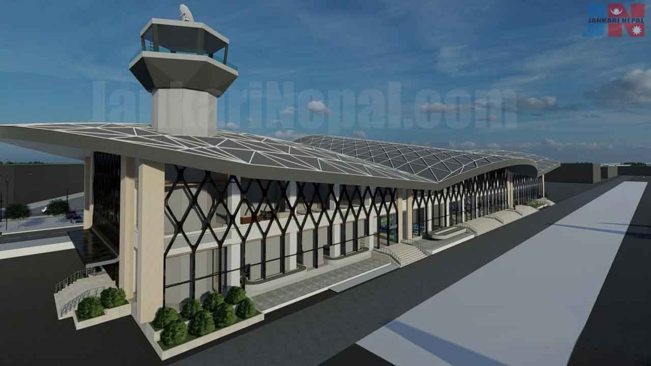 अत्याधुनिक किसिमको ७ हजार सात सय ४९ वर्गमिटर क्षेत्रफलमा भवन निर्माण गरिने छ । यससँगै टावर हुनेछ । विमानस्थलको धावन मार्ग विस्तार हुँदासमेत काम गर्ने गरी टर्मिनल भवन बनाउन लागिएको हो । नेपाली सेनाको गण र घोडा प्रजनन केन्द्रलाई स्थानान्तरण गरी विमानस्थलको धावन मार्ग विस्तार गर्ने योजना रहेको छ । नेपाली सेनासँग प्राधिकरण छलफलमा रहेको थापाले जानकारी दिनुभयो । उहाँले भन्नुभयो “विमानस्थलको धावनमार्ग विस्तार हुँदासमेत काम गर्ने गरी टर्मिनल भवन बनाउन लागिएको हो ।”
