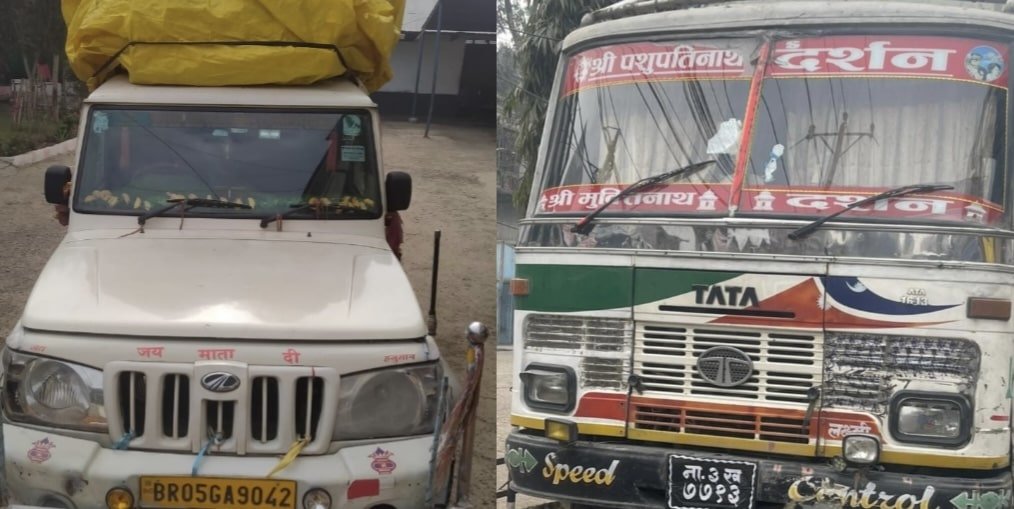 वीरगञ्ज महानगरपालिका-१६ स्थित रेल्वे सडक खण्डबाट ना ३ ख ७७१३ नम्बरको ट्रक र विआर ०५ जिए ९०४२ नम्बरको पिकअप गाडीलाई चेकजाँच गर्दा बिलविजकमा भएको भन्दा बढी सामान देखिएकोले नियन्त्रणमा लिएको प्रहरी नायव उपरिक्षक निर्मल बुढाथोकीले बताए ।