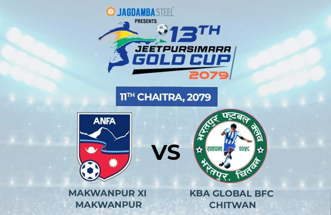 जगदम्बा जीतपुरसिमरा गोल्डकपः आज के.बि.ए भरतपुर र मकवानपुर ११ भिड्दै