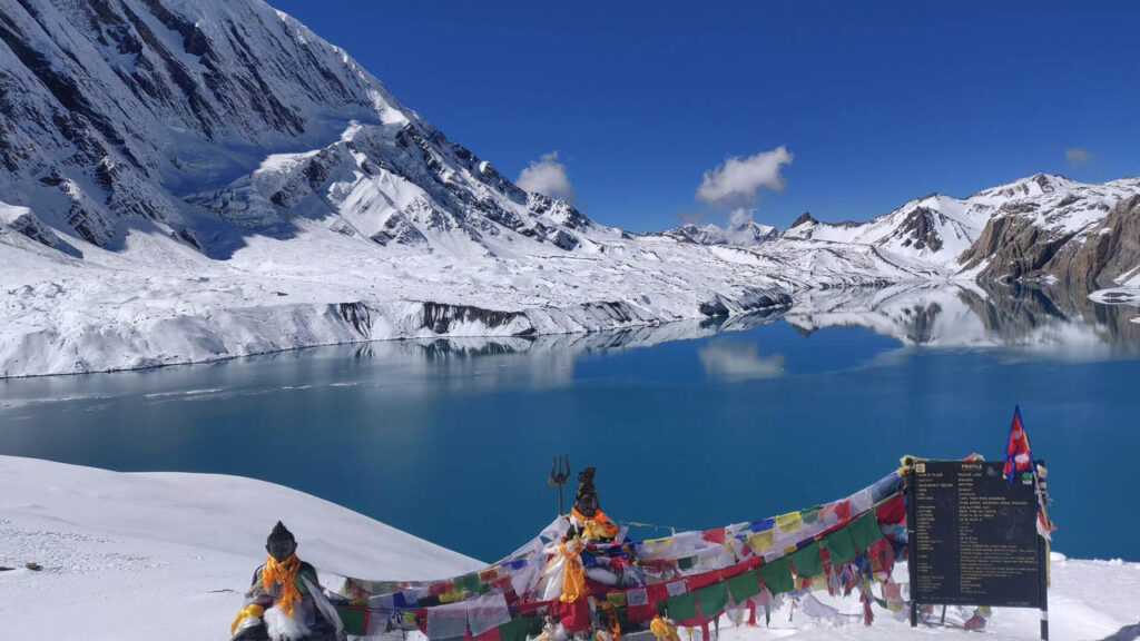 Tilicho Lake is one of the highest lakes in the world, located in Nepal’s Annapurna region at an altitude of 4,919 meters. Known for its striking blue waters, the lake is surrounded by snow-covered mountains, offering breathtaking views. Tilicho Lake is a popular trekking destination, often included in the Annapurna Circuit trek. The journey to the lake takes trekkers through rugged landscapes, steep trails, and high-altitude passes, making it a challenging but rewarding adventure.